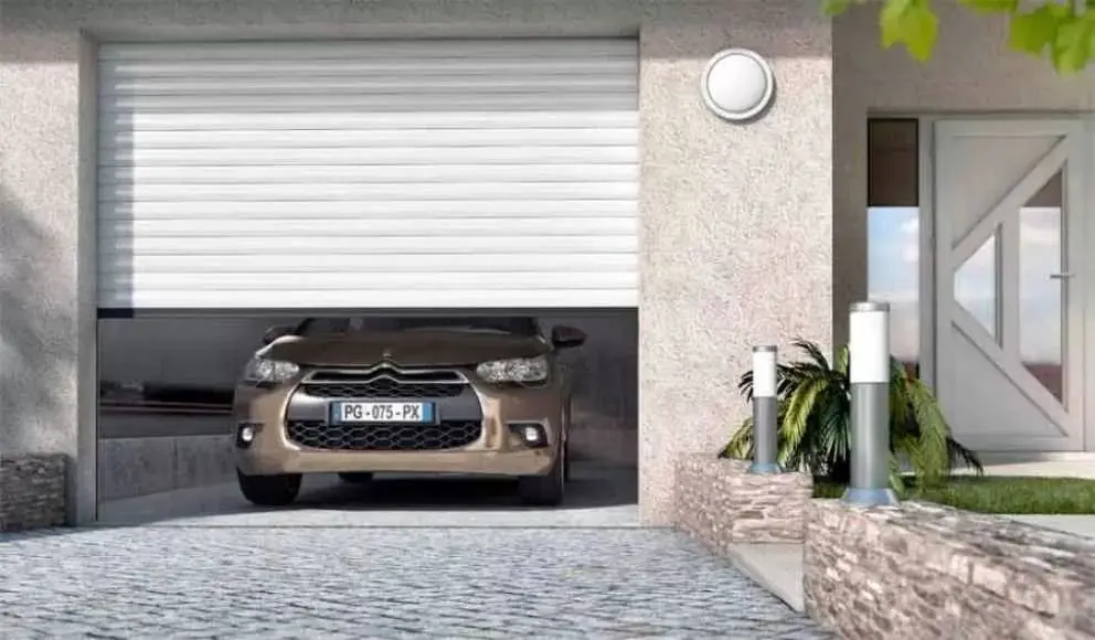 - La porte de garage enroulable : Un coffre est placé sur la porte en haut, dans lequel la porte va s’enrouler lors de son ouverture. C’est le modèle qui vous fera gagner en espace, pas d’inconvénient à noter pour ce type de porte.